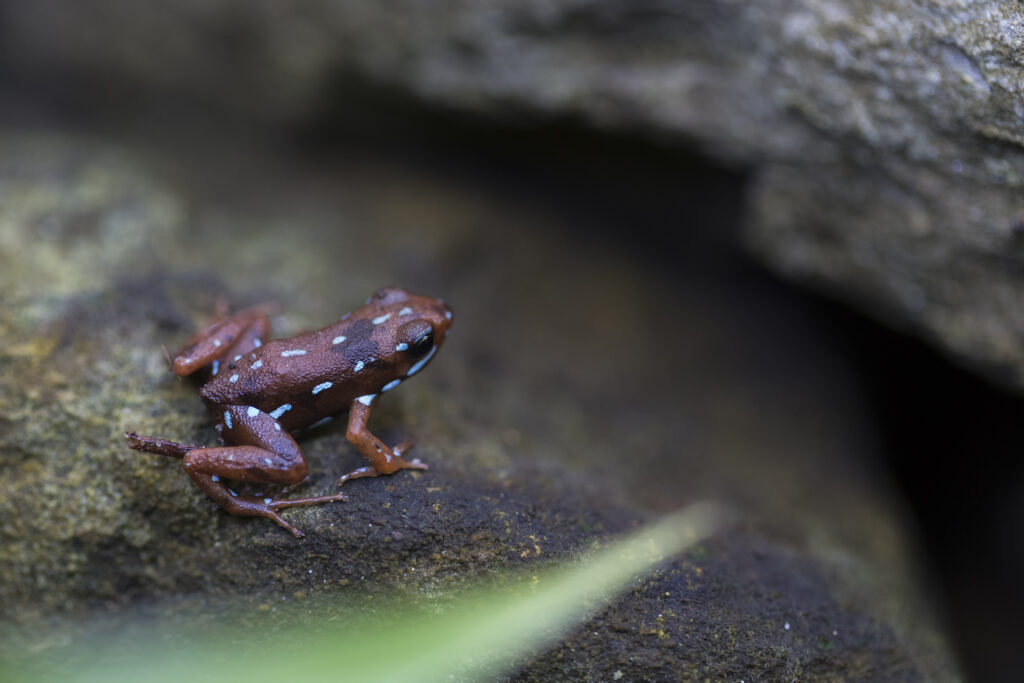 Facts: Males of this species demonstrate parental care, guarding the eggs in leaf litter for up to 2 weeks before they hatch.