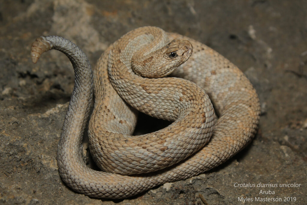 Aruba island rattlesnakes are native to Aruba/Sandy, rocky, and dry hillsides.