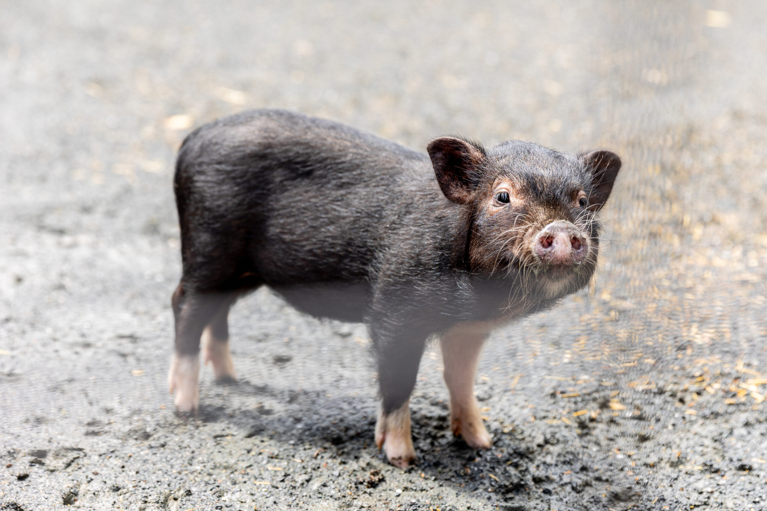 Though commonly known as just mini pigs, other names for the American mini pig include pocket, teacup, micro, super-micro, or nano pig. In comparison to other breeds these pigs are small but adults can range in size from 50 – 100 pounds.
