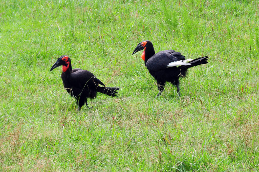 Hornbills live in groups of up to ten birds with one monogamous dominant pair and juveniles. Only the dominant pair breed while the younger birds defend the nest and territory and also help find food. While they can live up to 40 years in the wild and 50 years under human care, ground hornbills are some of the slowest reproducing birds and also face other threats. The species is listed as vulnerable to extinction by the International Union for Conservation of Nature (IUCN) due to habitat destruction and deforestation as well as poaching for the use of parts for medicine and rituals.