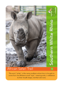 Find a Zoo Keeper or Mission Engagement staff member on the African Safari Trail to find this card.