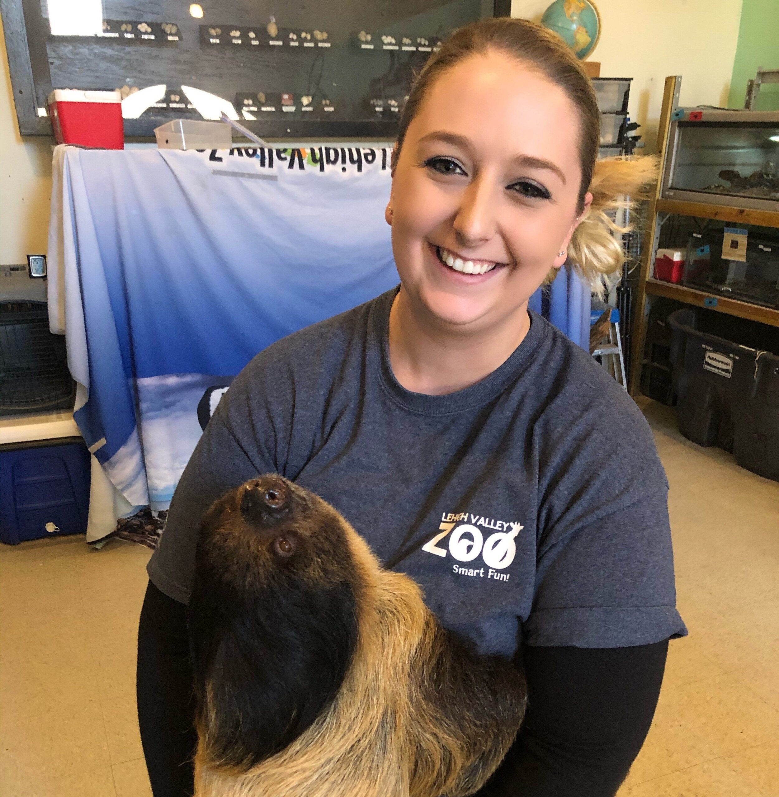 woman holds sloth