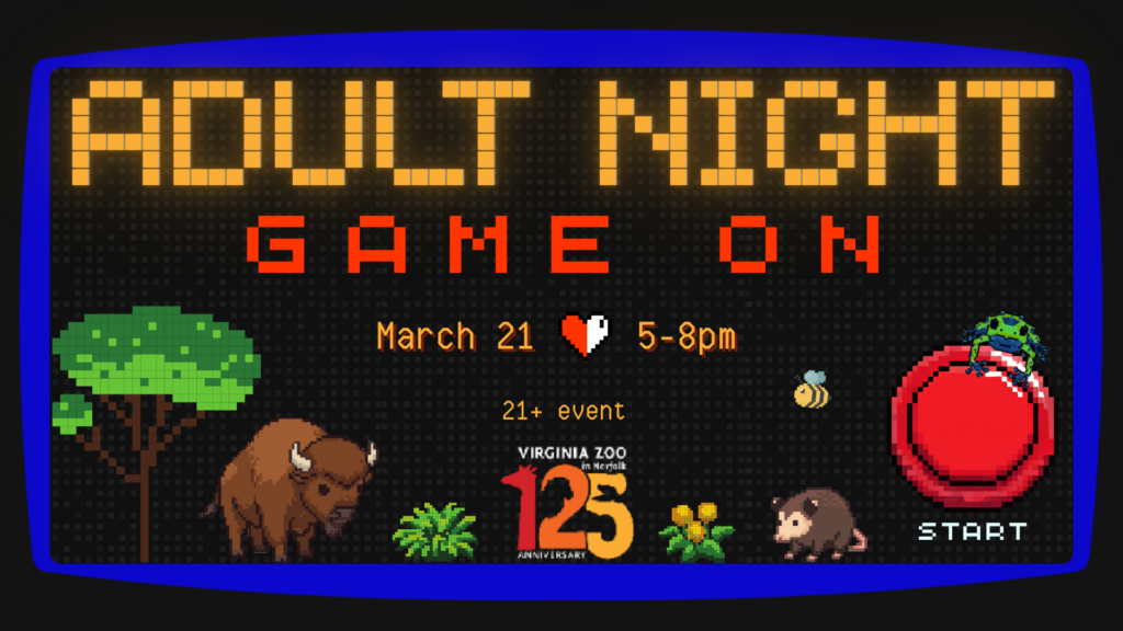 Have you been missing the golden age of gaming? 👾 Well, it’s time to level up by joining us for Adult Night: Game On on Saturday, March 21 from 5pm-8pm at the Virginia Zoo!