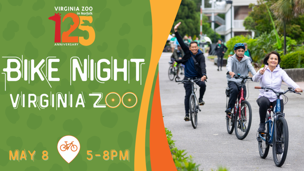Tire-d of your same-old cycling route? 🚲 Put those pedals to the metal and gear up for a wild, after-hours ride at the Virginia Zoo! Cruise through the Zoo on designated paths, listen to our DJ spin dance-worthy tracks, take a break to walk the animal trails, and meet local bike vendors that can help you repair or trick out your ride with wheel-y cool accessories. Electric scooters are not permitted for this event.