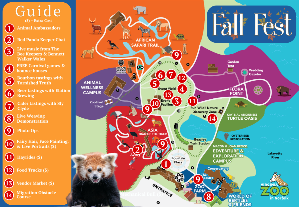 - As an outdoor venue, events are rain or shine unless otherwise indicated. If any changes are made, an announcement via an email to our members and/or ticket holders and on the Virginia Zoo social media channels will be issued prior the event.
