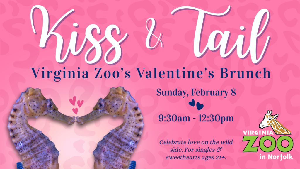 Tired of the same old up-scale dinner to celebrate Valentine’s Day? 🦎 Join us at the Virginia Zoo on Sunday, February 8 from 9:30am to 12:30pm for a more casual brunch time celebration with your fellow lovebirds or mates! 🥂 Sneak in some hugs and hisses while learning fun facts about dating and mating in the animal kingdom, nibble on tasty treats, name a cockroach after your ex 🪳, watch Carson the Superb owl choose a Super Bowl winner 🦉🏈, and more! Whether you’re in love with love 💗 or you think Cupid is stupid 💘🙄, you can bask in the fun of this unfrogettable event for singles and sweethearts 21+!