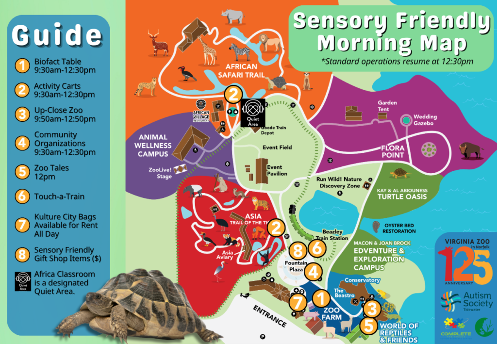 Join us as we partner with Autism Society Tidewater Virginia, Complete the Puzzle, and Destination Family Services to provide guests of all abilities and needs, along with their families, the opportunity to visit the Virginia Zoo in a less overwhelming environment. On this special date and time we will provide stress-free activities for your Zoo visit through adapted programs and a reduced number of visitors. With access to animal ambassadors, activity carts, biofact carts, and more the whole family can enjoy this sensory-friendly morning at the Zoo.