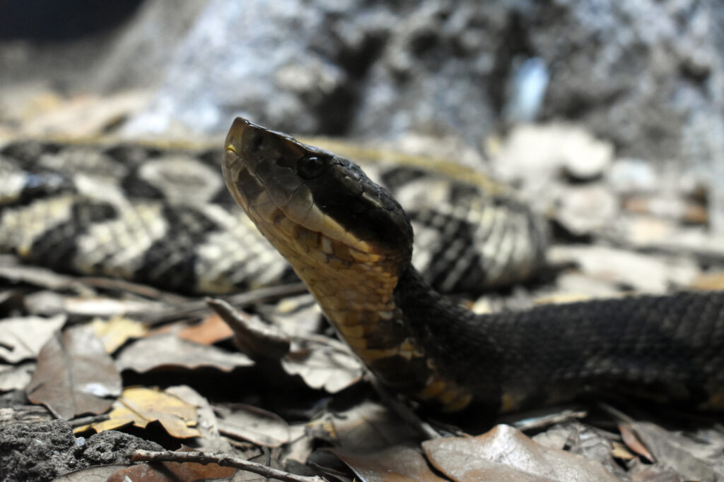 One of Virginia’s three venomous snake species, the cottonmouth is endemic to wetlands in the Southeastern U.S. Also known as water moccasins, the snakes are semi-aquatic and spend the majority of their time swimming and preying on food such as frogs, fish, other snakes, lizards and small mammals.