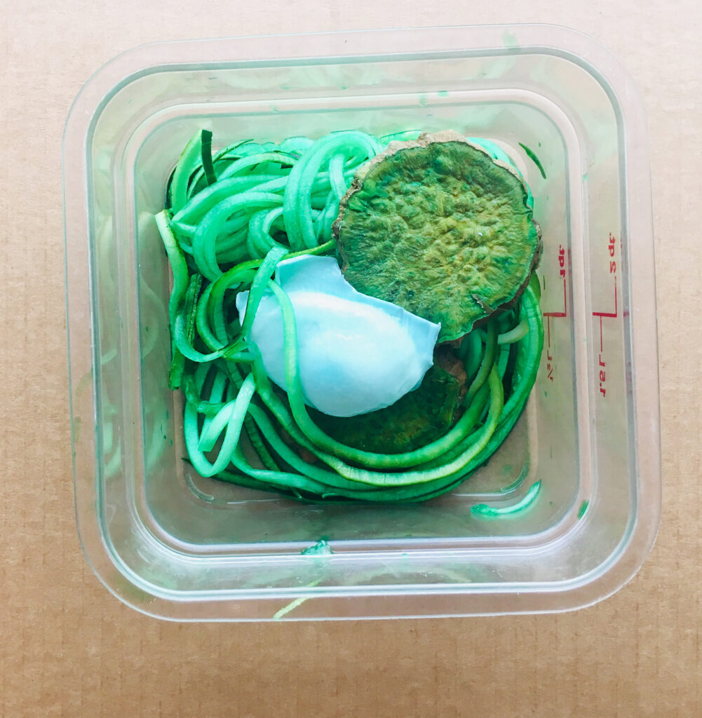 Step 2: Peel the zucchini and cucumber. Use a spiralizer to make the noodles.
