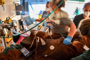 The Great Ape Heart Project (GAHP), based at the Detroit Zoo, was founded in 2010 with the goal of collecting and analyzing cardiac data to investigate and understand heart disease in great apes amongst the zoo community. As a part of the Virginia Zoo’s routine anesthetized health evaluations, we were excited to have the opportunity to partner with the GAHP for a complete cardiac work-up of our orangutans. We hosted board-certified veterinary specialists from the Columbus Zoo and a local veterinary internal medicine specialist. Along with our on-site veterinary team, these great-ape specialists performed advanced imaging on our orangutans, including radiographs, echocardiograms, and abdominal ultrasounds.
