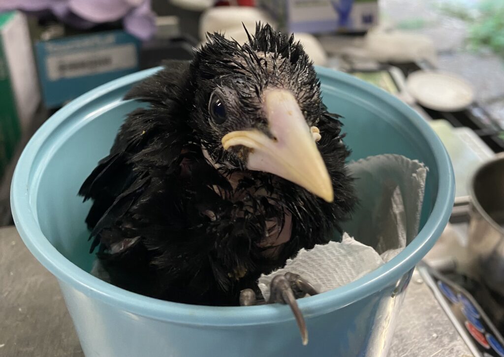 Our white-headed buffalo weaver breeding pair, Todd and Margo, who live on our Africa Trail, had their first hatchling, Dahlia, on August 31. Being a parent is hard, and although our birds are recommended for breeding by one of the Association of Zoos & Aquariums (AZA) Species Survival Plans (SSP), parenting instincts don’t always come naturally. Most of the eggs laid this year were actually infertile and the pair proved inconsistent in incubating the egg to term during the short period required to hatch any potential offspring. As a result, the Bird Team had to step in to help incubate the egg. This involved regularly turning the egg, as well as closely monitoring the temperature and humidity to ensure proper growth of the embryo. On the 15th day of incubation Dahlia hatched, but the work didn’t stop for her keepers. Since Dahlia was not physically with her parents at birth and she is an altricial animal, meaning one that is completely dependent on parental care for initial survival (like humans!), our keepers stepped up in a big way to hand feed her up to 12 times per day!