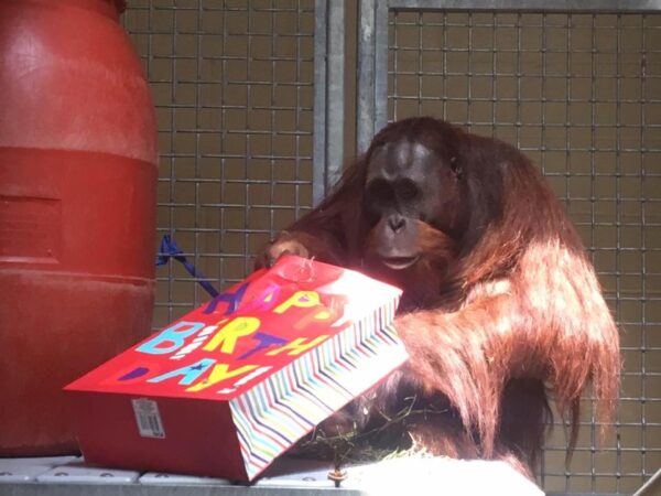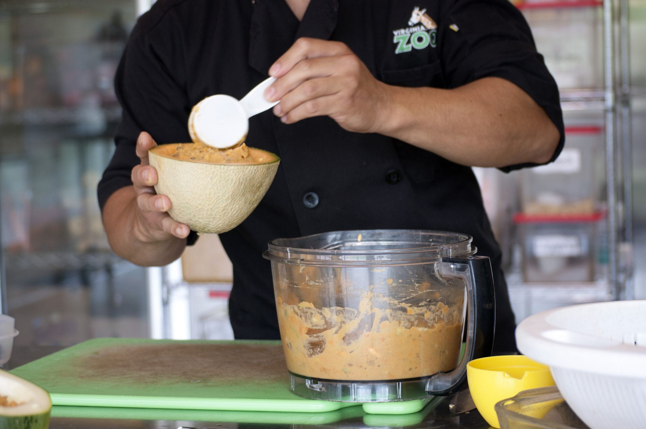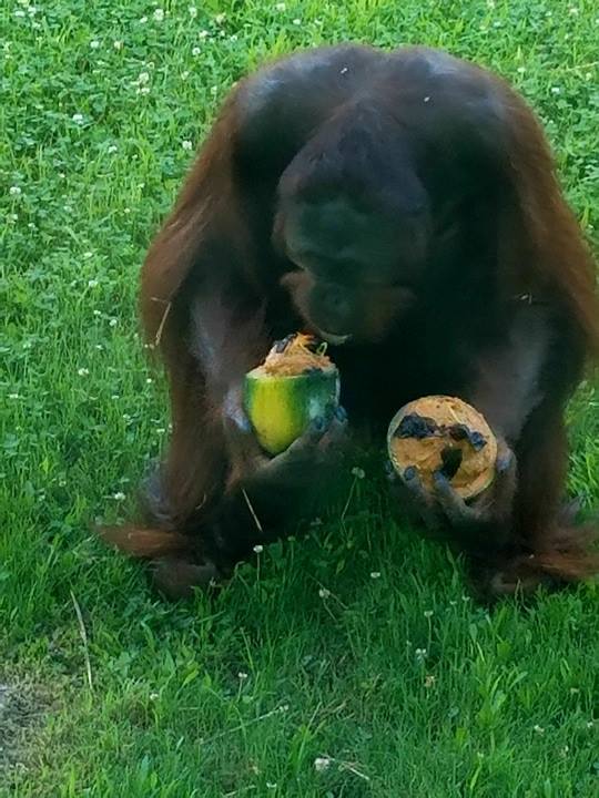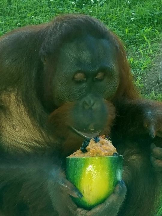 Solaris, one of the Virginia Zoo’s four orangutans, celebrated his 14th birthday on June 22. Chef Yohn, with the help of Zoo Keepers, always likes to prepare special treats and enrichment for the animals to enjoy on their birthdays. For Solaris’s birthday, Yohn prepared a soft serve treat to help the orangutan beat the heat while enjoying his birthday party. Using fruits and veggies found on Solaris’s daily diet sheet, Chef Yohn was chilled and thrilled to make this yummy frozen meal.