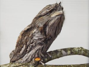 Just kidding, we knew exactly what we wanted to call this month’s Tales of the Tails blog, featuring one of our coolest bird species, but we also wanted to use a pun that we’ll explain in just a bit. Meet the Tawny Frogmouth. Let’s start off by saying this bird species is not a member of the owl family; let ‘s repeat – not an owl!