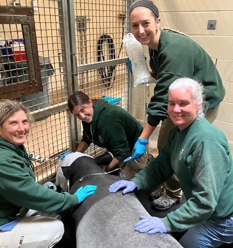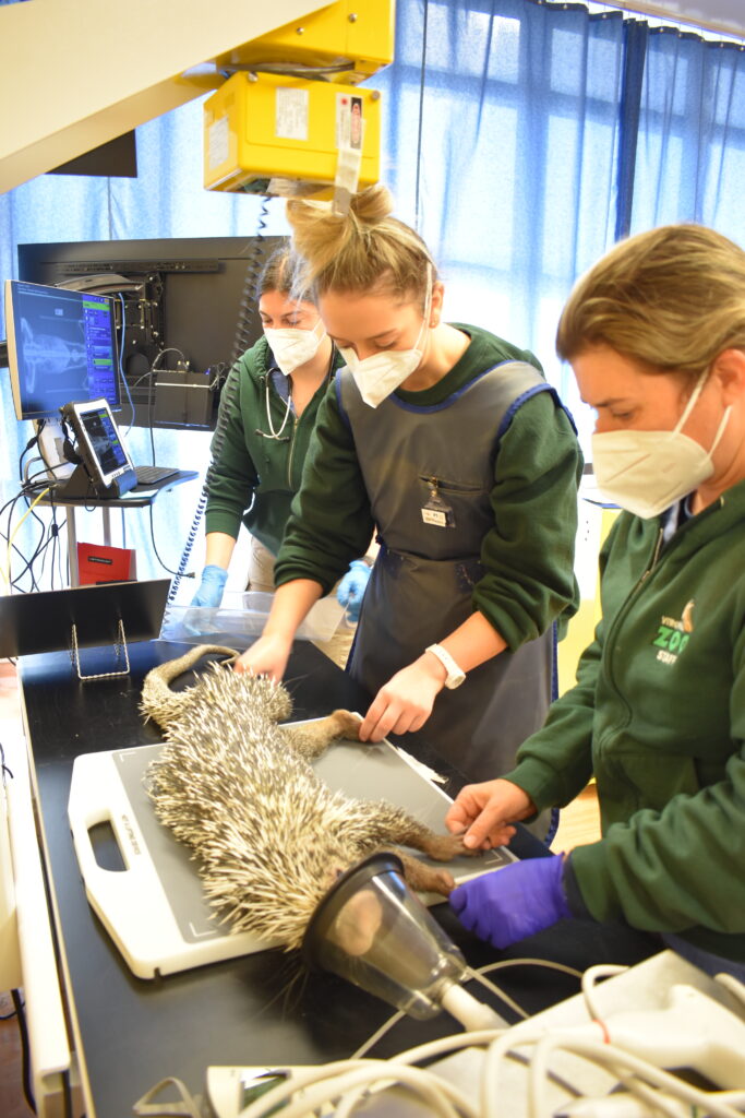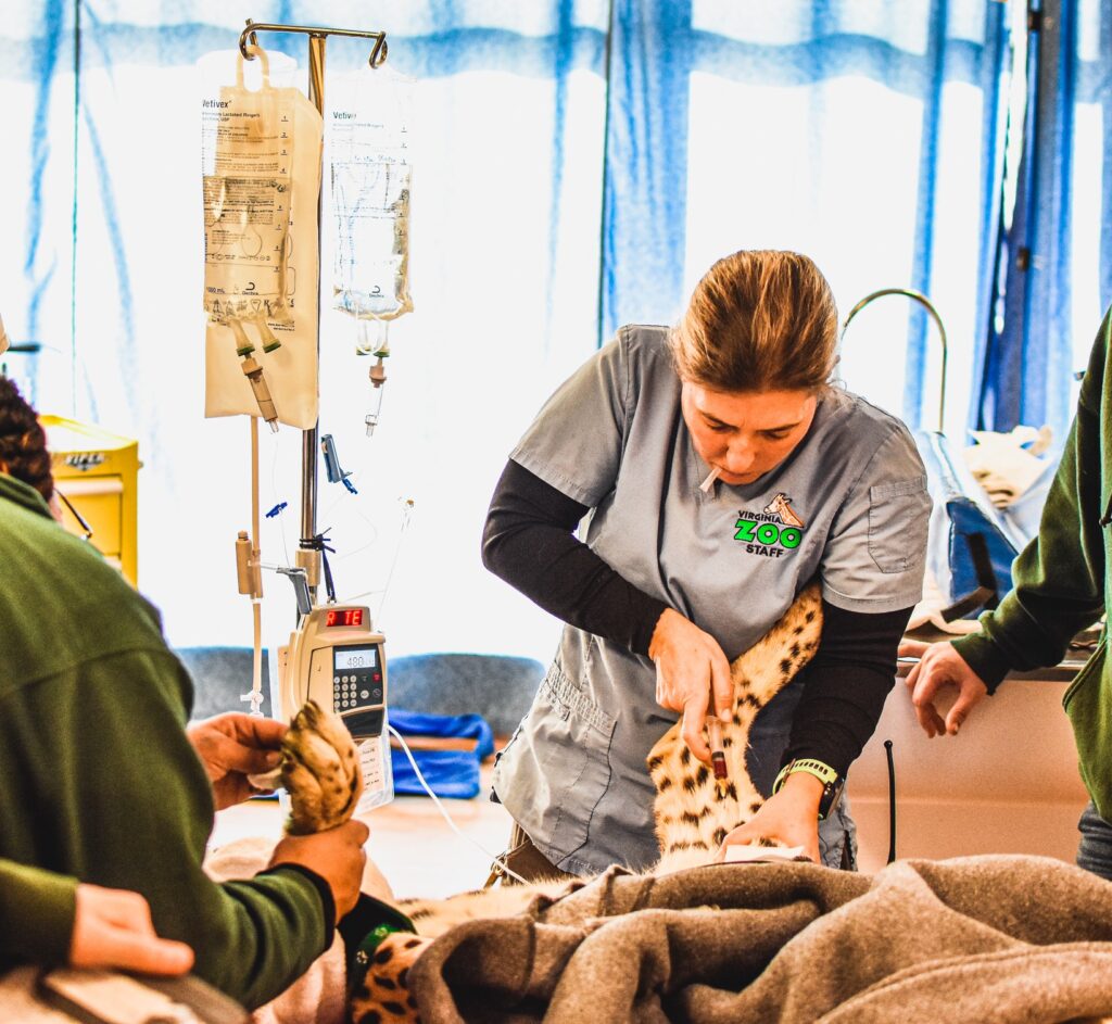 “Anytime we do a veterinary procedure on an animal, we have fun! It’s a lot of work but it is also always an amazing experience. No day is exactly the same! One day I could be helping with a physical exam on a porcupine, and the next day a root canal on a lion. It definitely is not a boring job. I love being able to use all of my technical skills. Helping the keepers train their animals for medical behaviors, like allowing voluntary hand-injections and blood collection, is also a very fun and rewarding part of my job.” – Leah Rooker
