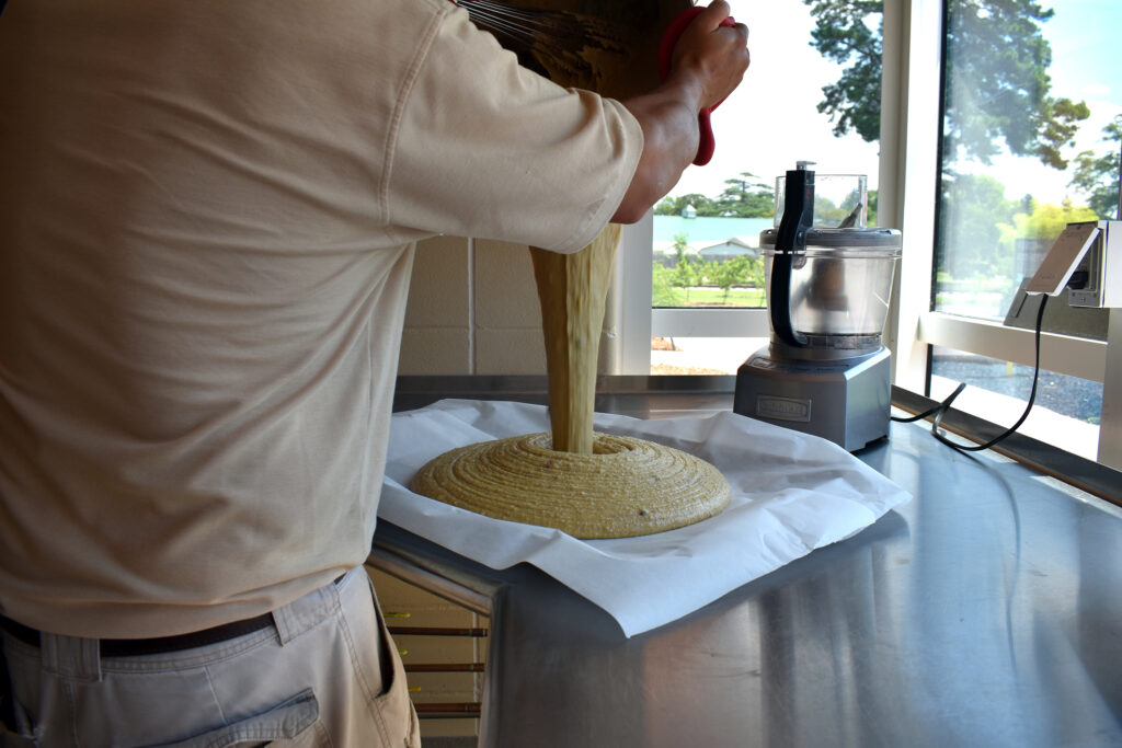 Step 4: Pour mixture onto a large pan and spread evenly.